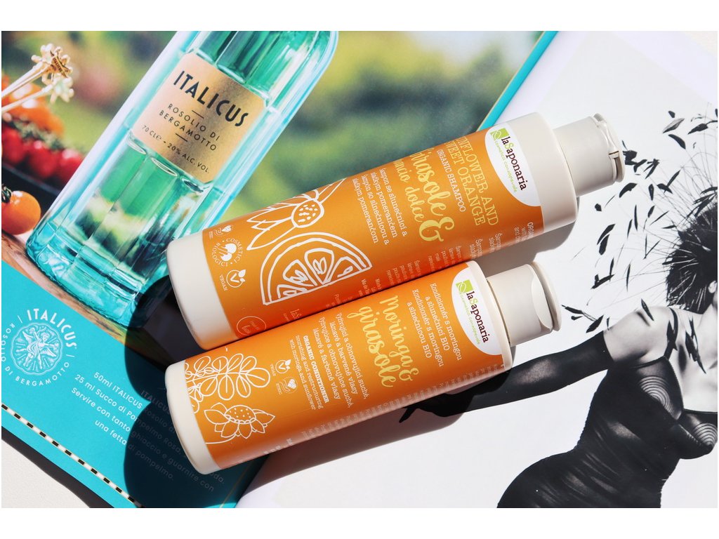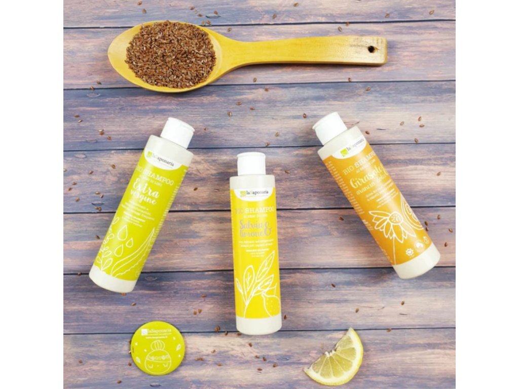 Šampon se slunečnicí a citronem BIO laSaponaria je vhodný zejména pro mastící se vlasy bez života, které jsou poškozené a potřebují extra péči. Díky šetrým mycím složkám nedráždí a nevysušuje, naopak je vlasová pokožka zklidněná a regenerovaná. Šampon voní svěže po citrusech.