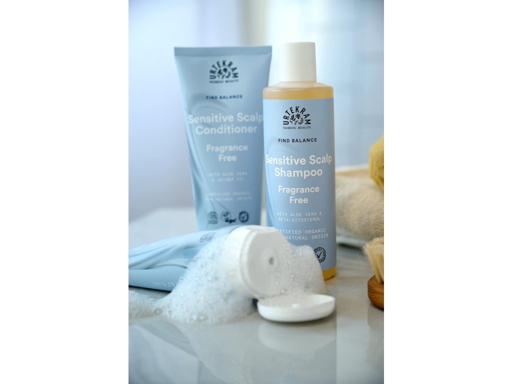 Šampony Urtekram bez parfemace jsou vyvinuty konkrétně pro citlivou pokožku a alergiky. Jsou jemné a neobsahují žádné agresivní tenzidy. Pouze bylinné výtažky, mýdlové látky z palem olejných a rostlinné oleje, které zanechají Vaše vlasy čisté a hebké. Mořská sůl dodává velké množství minerálů, které obohacují jak Vaše vlasy, tak pokožku hlavy. Schváleno Dánskou Asociací pro astma a alergie pro použití alergiky.